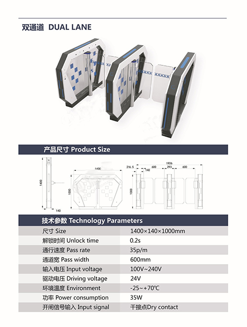 速通門346系統(tǒng)具備角度分辨和零位自檢功能,包含 500P/R 編碼器,分辨精度高,這種高精度的傳感器的優(yōu)勢(shì)是使擺桿轉(zhuǎn)動(dòng)_; 3.非法進(jìn)入有報(bào)警提示功能; 4.防沖功能,在沒有接收功能開閘信號(hào),擺臂自動(dòng)鎖死; 5.紅外防夾功能,在擺臂復(fù)位的過程中紅外檢測(cè)到人在通道中,擺臂會(huì)自動(dòng)回到打開狀態(tài); 6. 統(tǒng)一標(biāo)準(zhǔn)的對(duì)外電氣接口,可與多種讀卡器相掛接,并可通過管理計(jì)算機(jī)實(shí)現(xiàn)遠(yuǎn)程控制與管理; 7.